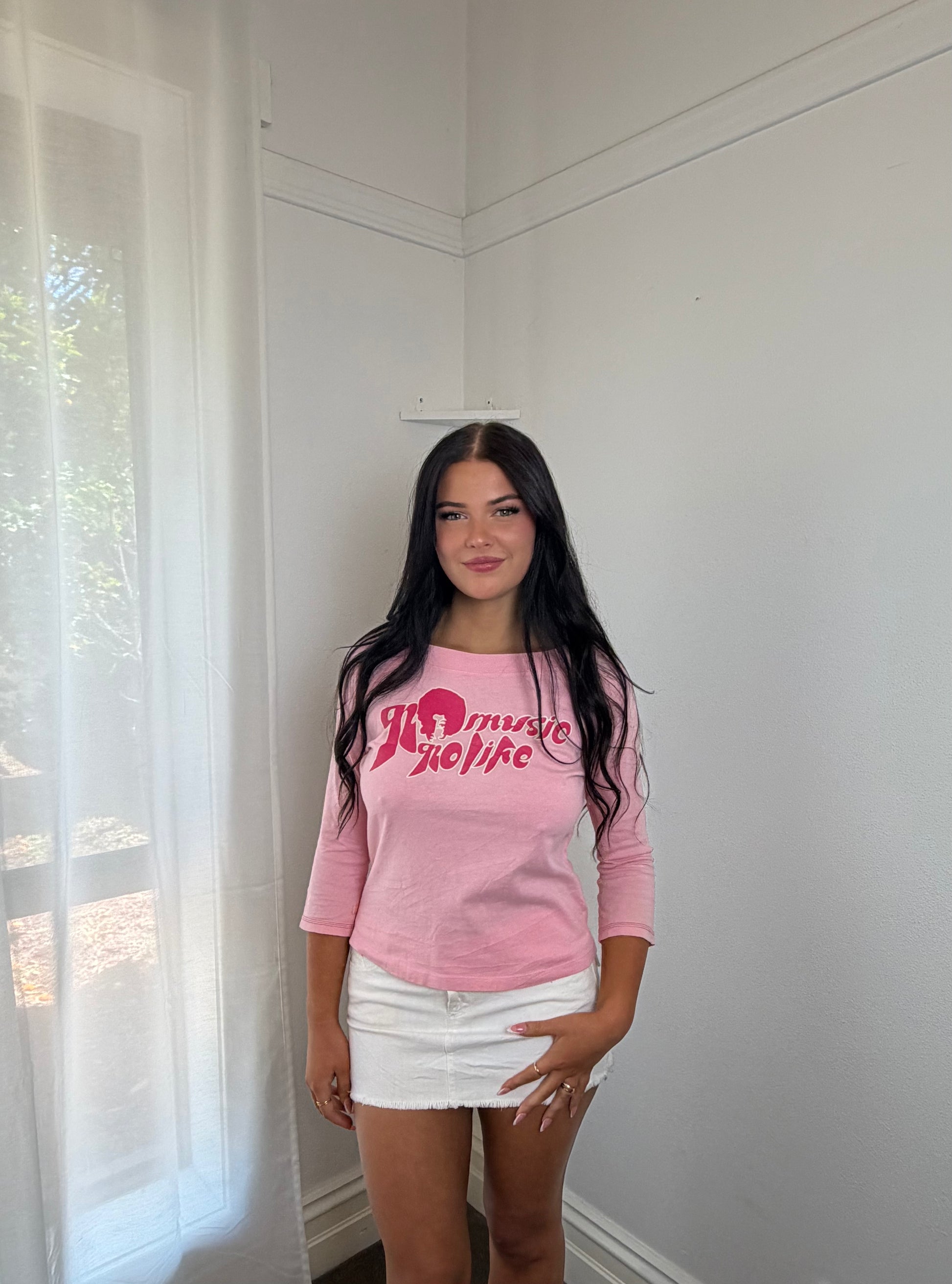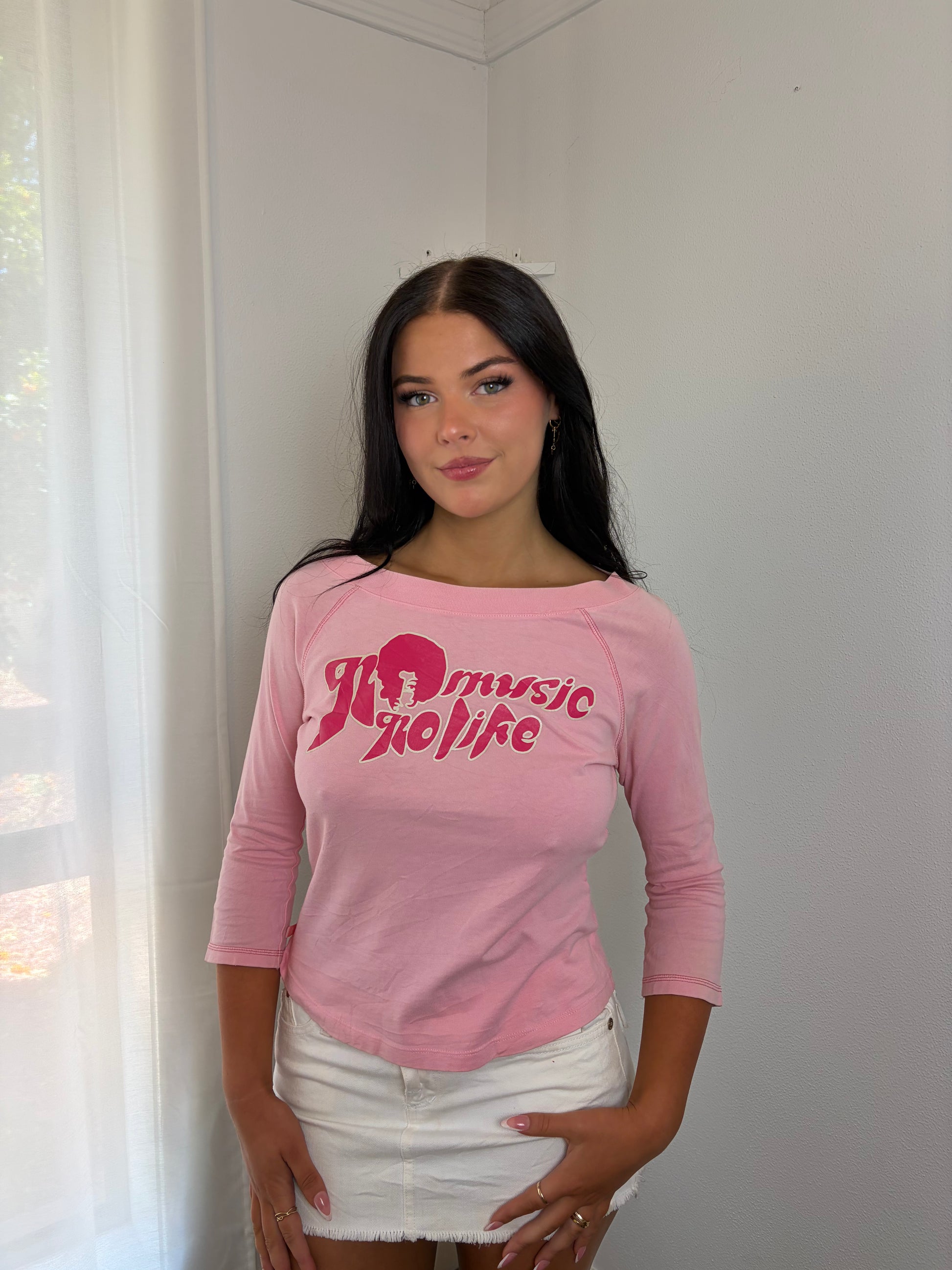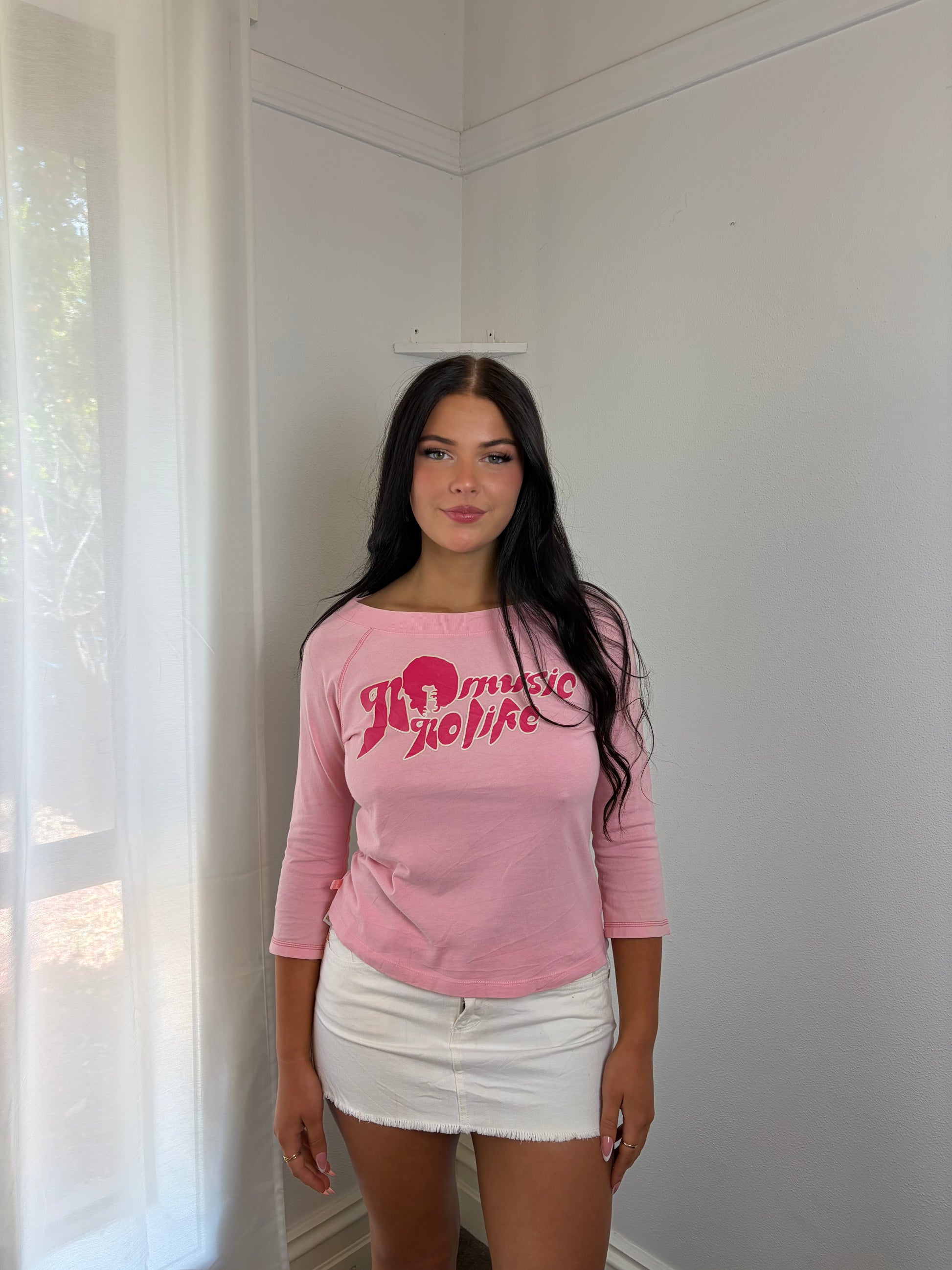 This Afro Music Top has a distinctive wide neckline and vibrant pink colorway. A versatile wardrobe essential that transitions seamlessly from casual to curated looks.