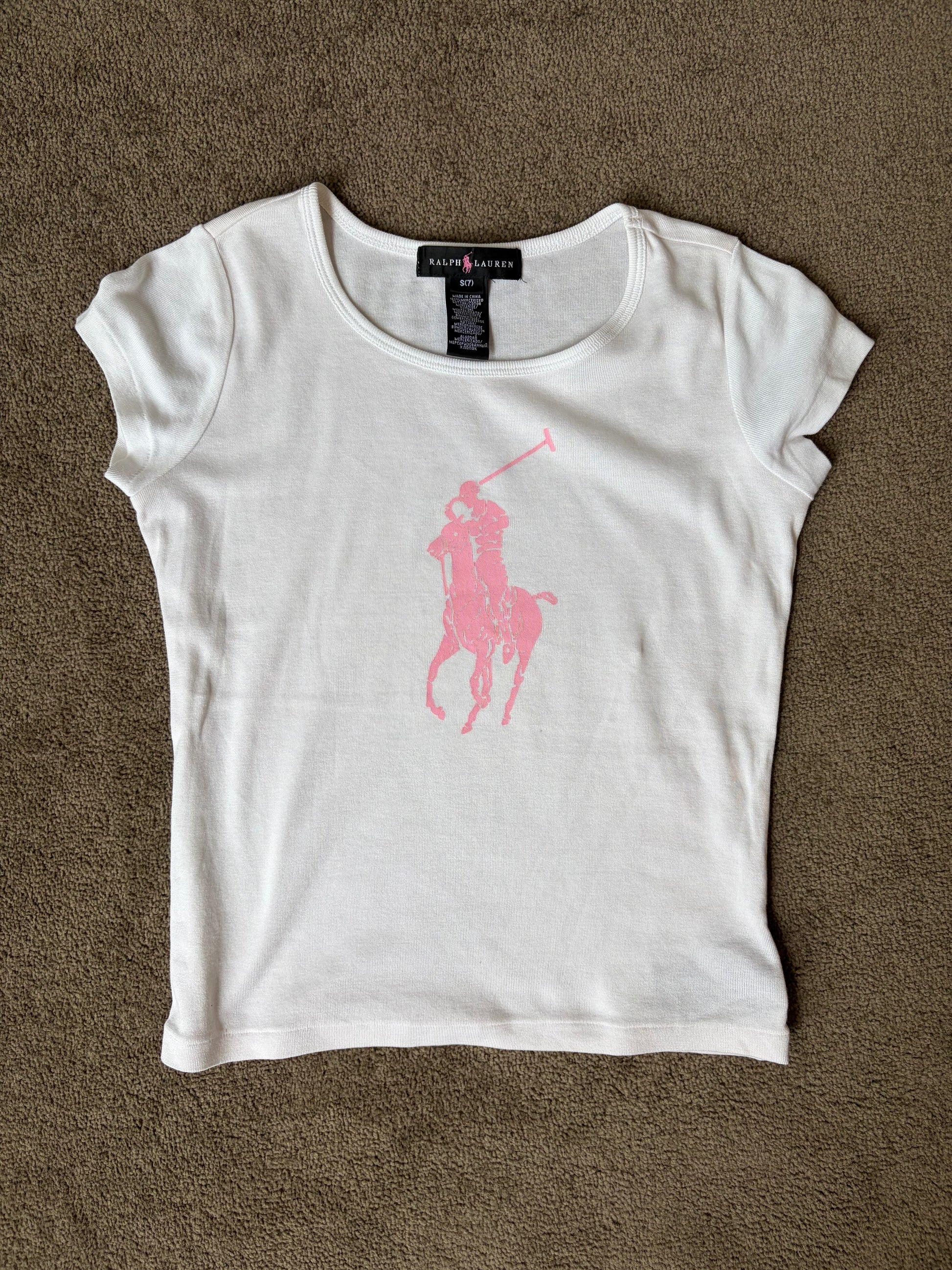 Ralph Lauren White T-Shirt with Pink Logo