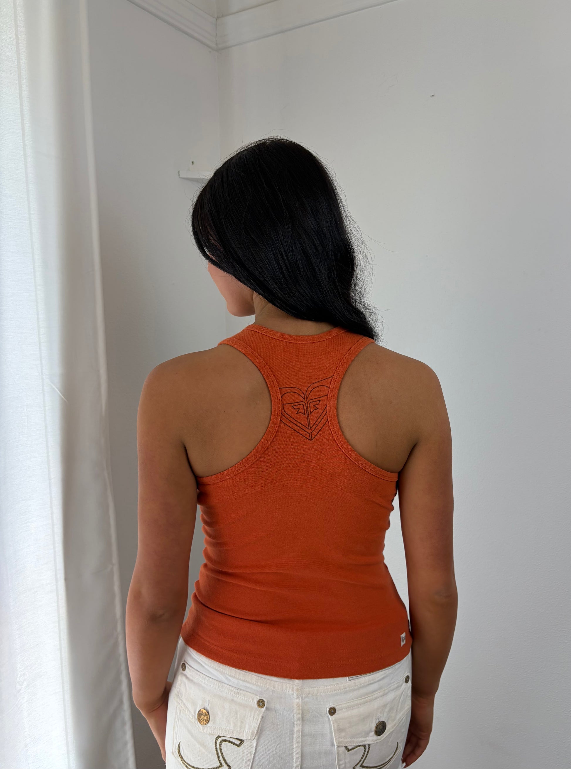 Classic Orange Roxy Tank A timeless vintage piece that captures the essence of early 2000s beachwear culture. Constructed with an under bra. Perfect pairing with vintage denim, or styling as a standalone summer essential.