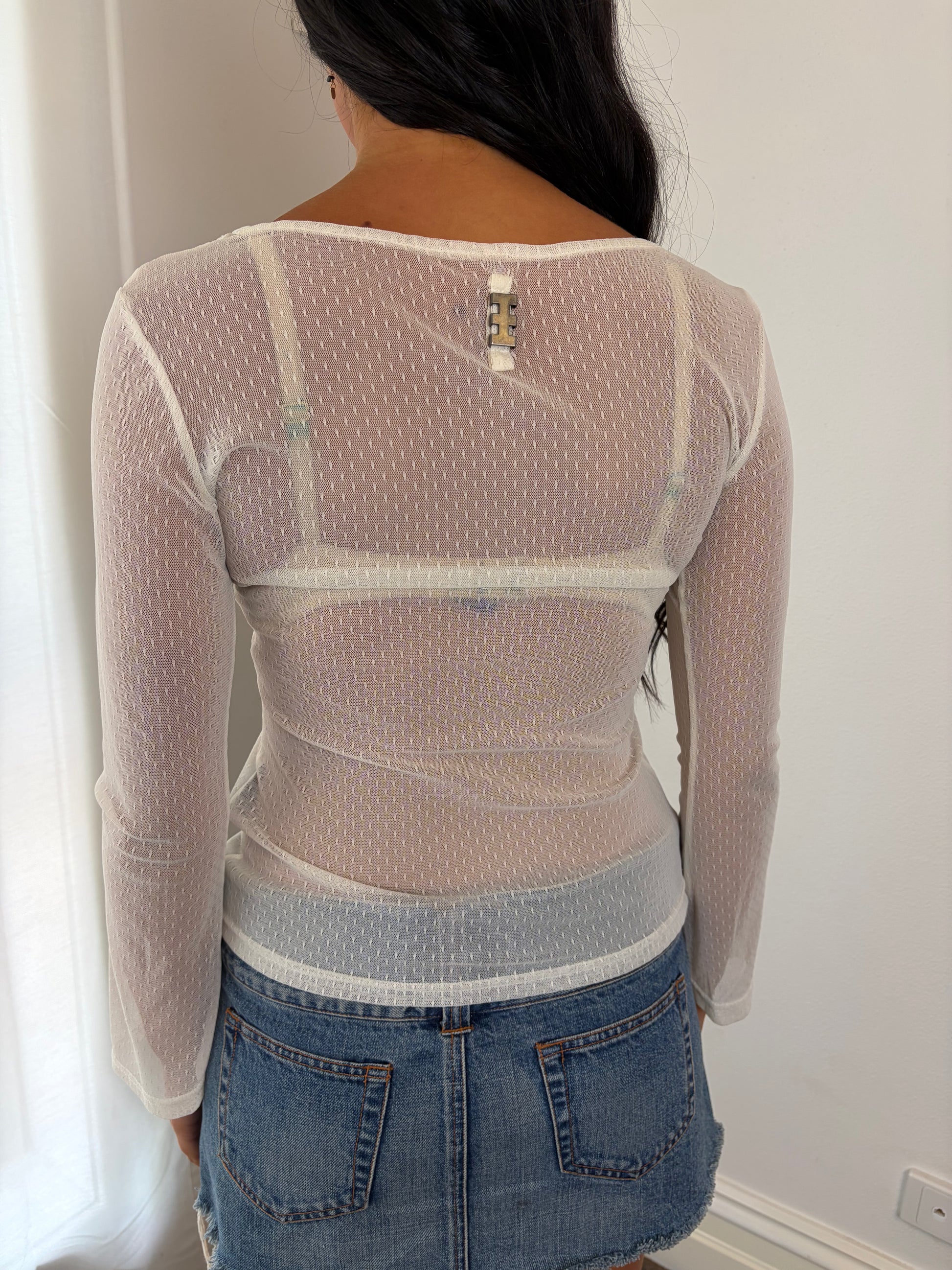 Sheer Ivory Mesh Long Sleeve Top Vintage Y2K