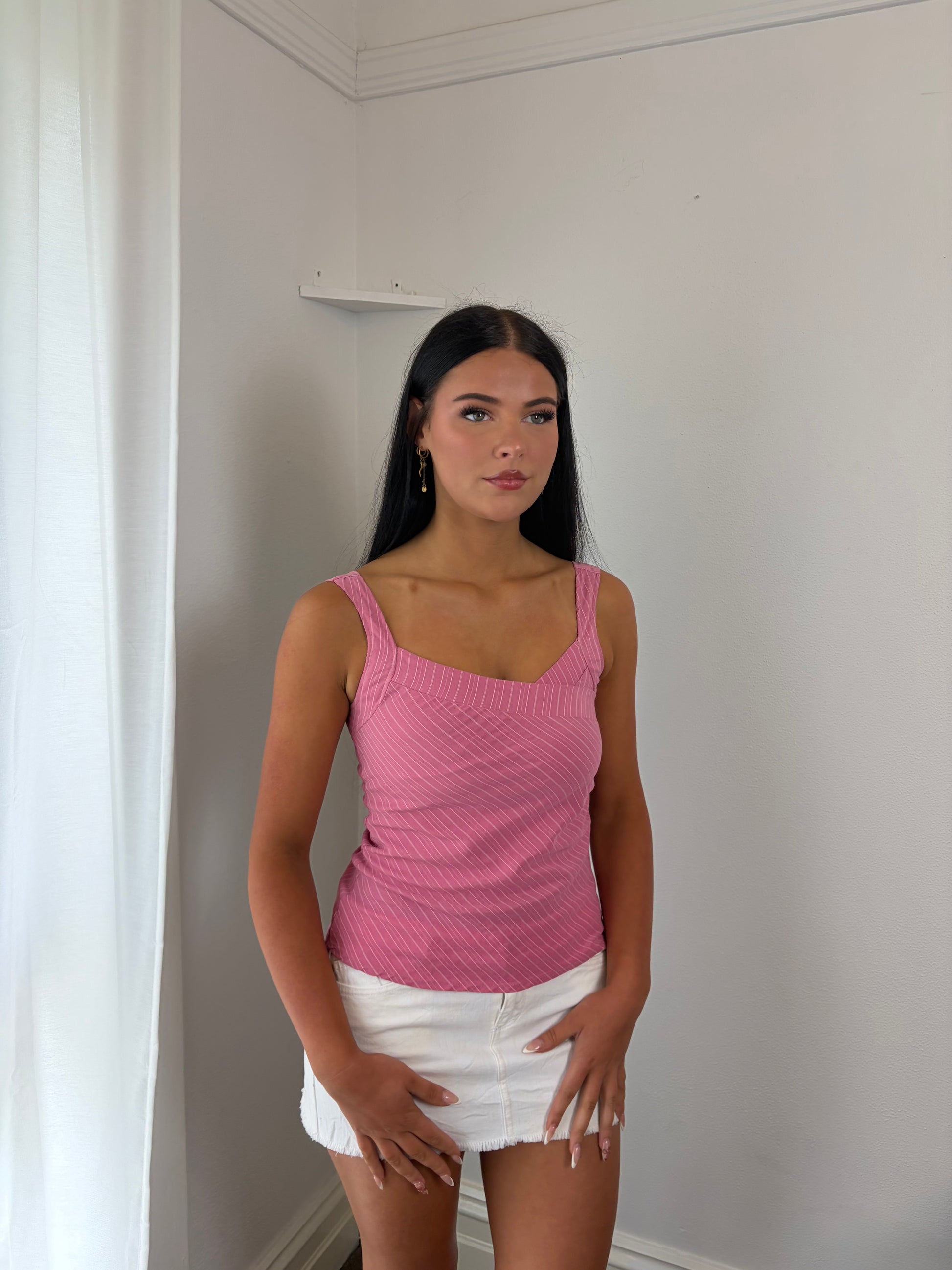Y2K Pink Pinstripe crossbody Top – 2000s Vintage